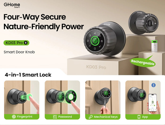 GHome Removable Battery Smart Door Knob Lock KD03PRO