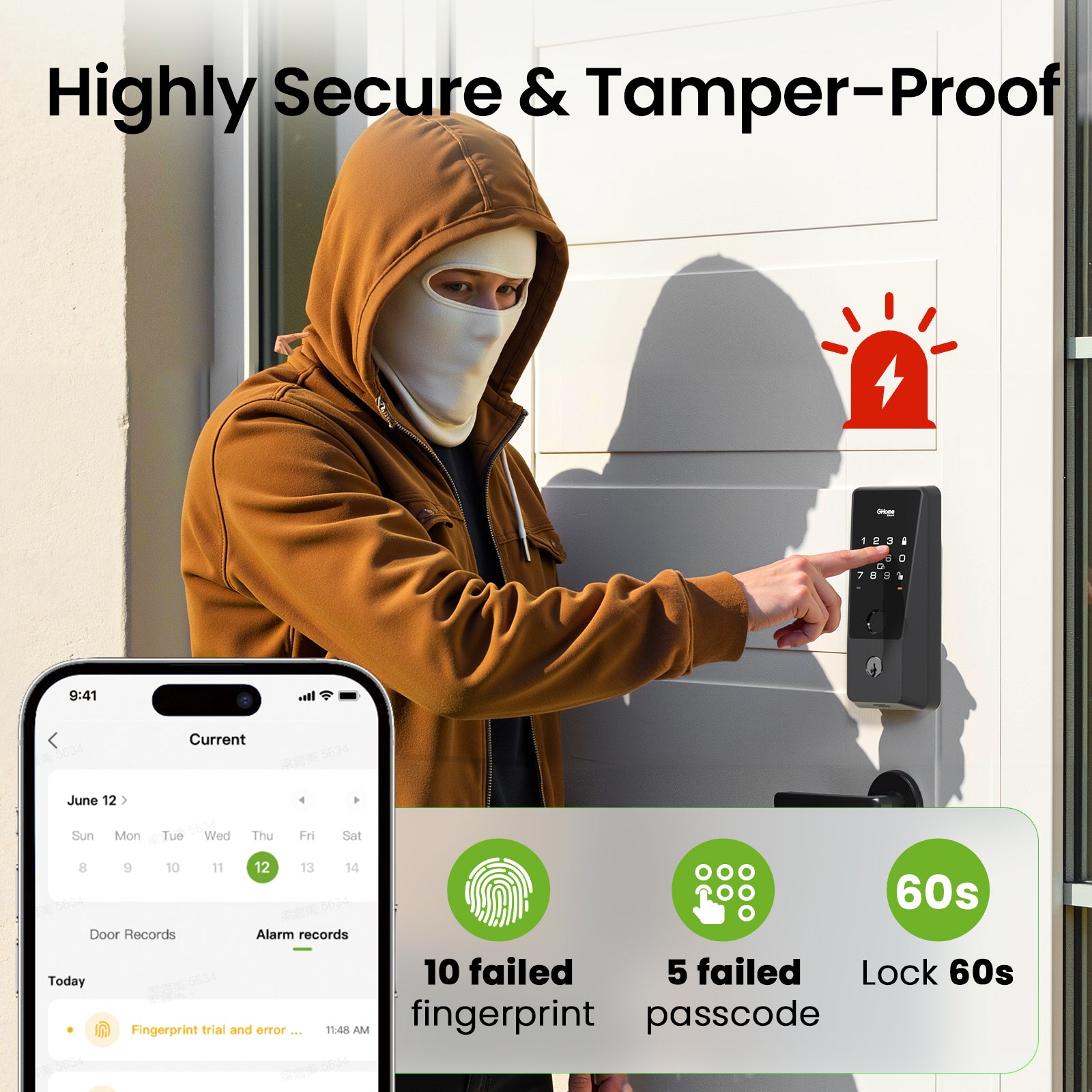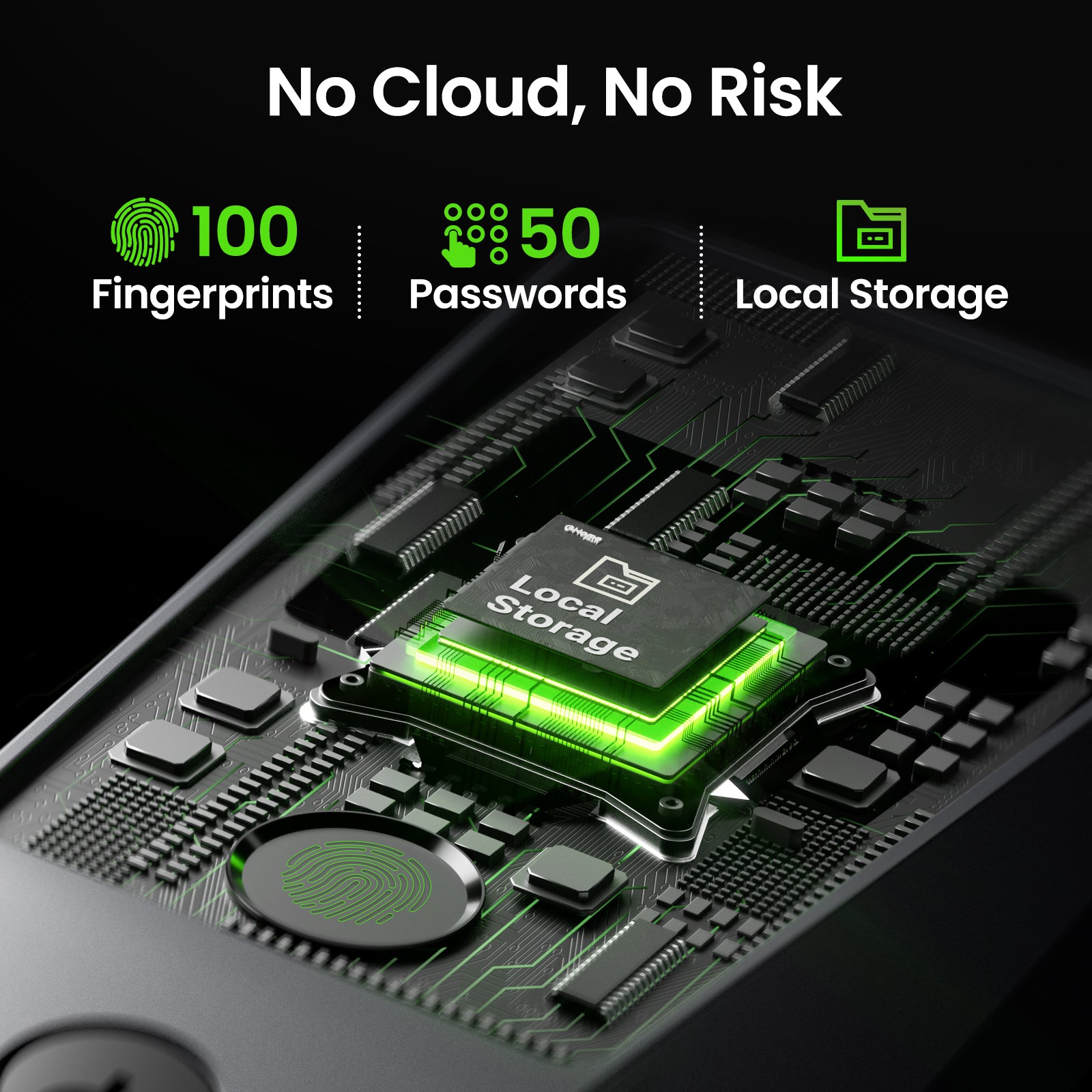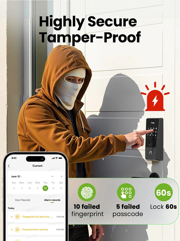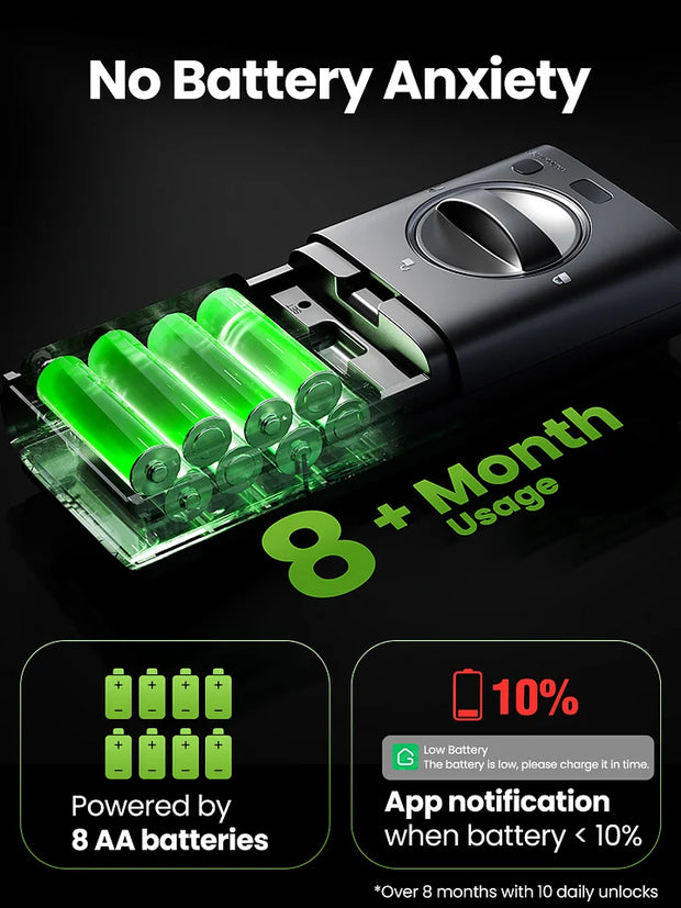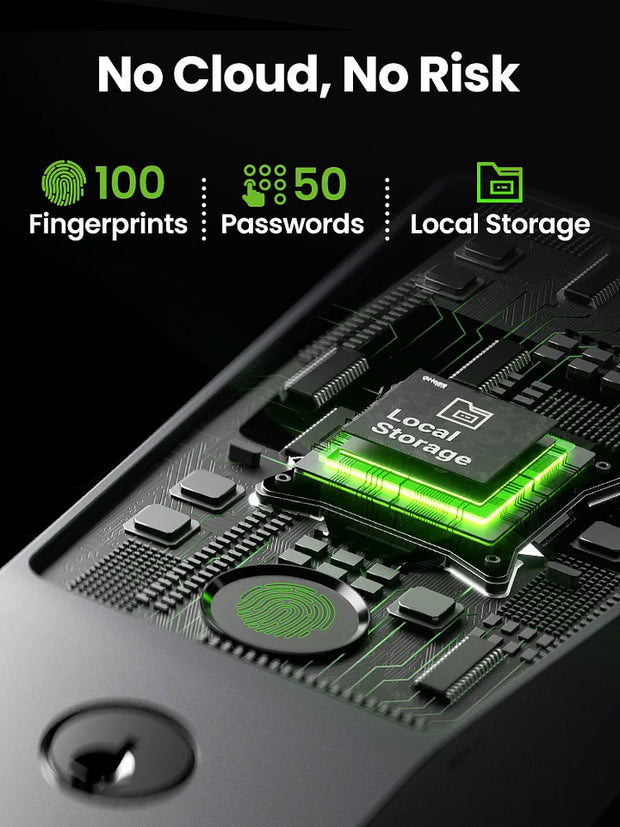The system uses encrypted storage for biometric data, which is stored locally in the lock, not in the cloud. This ensures your data remains secure and cannot be accessed remotely.